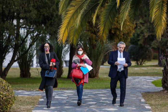 “Siempre me pone contento ver empresarios que se arriesgan y dan trabajo y se comprometen con la región en este momento particular del mundo y de nuestro país”, aseguró el Presidente, que estuvo acompañado en la residencia de Olivos por la vicejefa de Gabinete, Cecilia Todesca.
