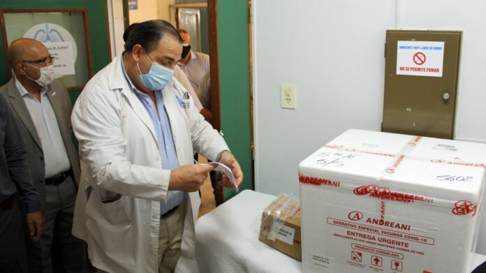 “La vacuna viene a constituir una herramienta más de lucha y será destinada a la aplicación del personal de los servicios críticos e hipercríticos”, expresó el secretario de Salud, Jorge Prieto al momento de la recepción.