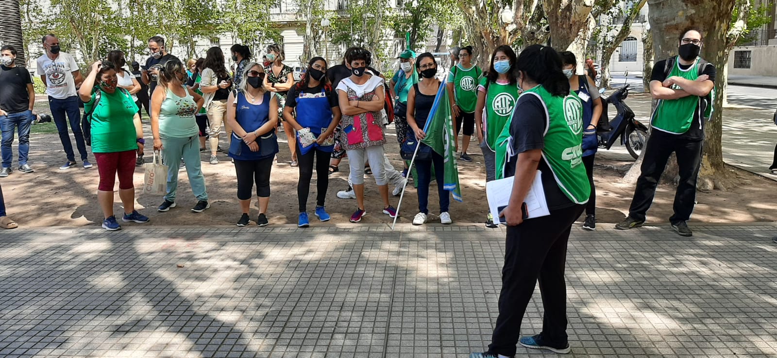 Amsafe Rosario y trabajadores de ATE se movilizaron durante la mañana de este viernes hasta Plaza San Martín, bajo la consigna “Marchamos por el salario y la situación de las escuelas”.