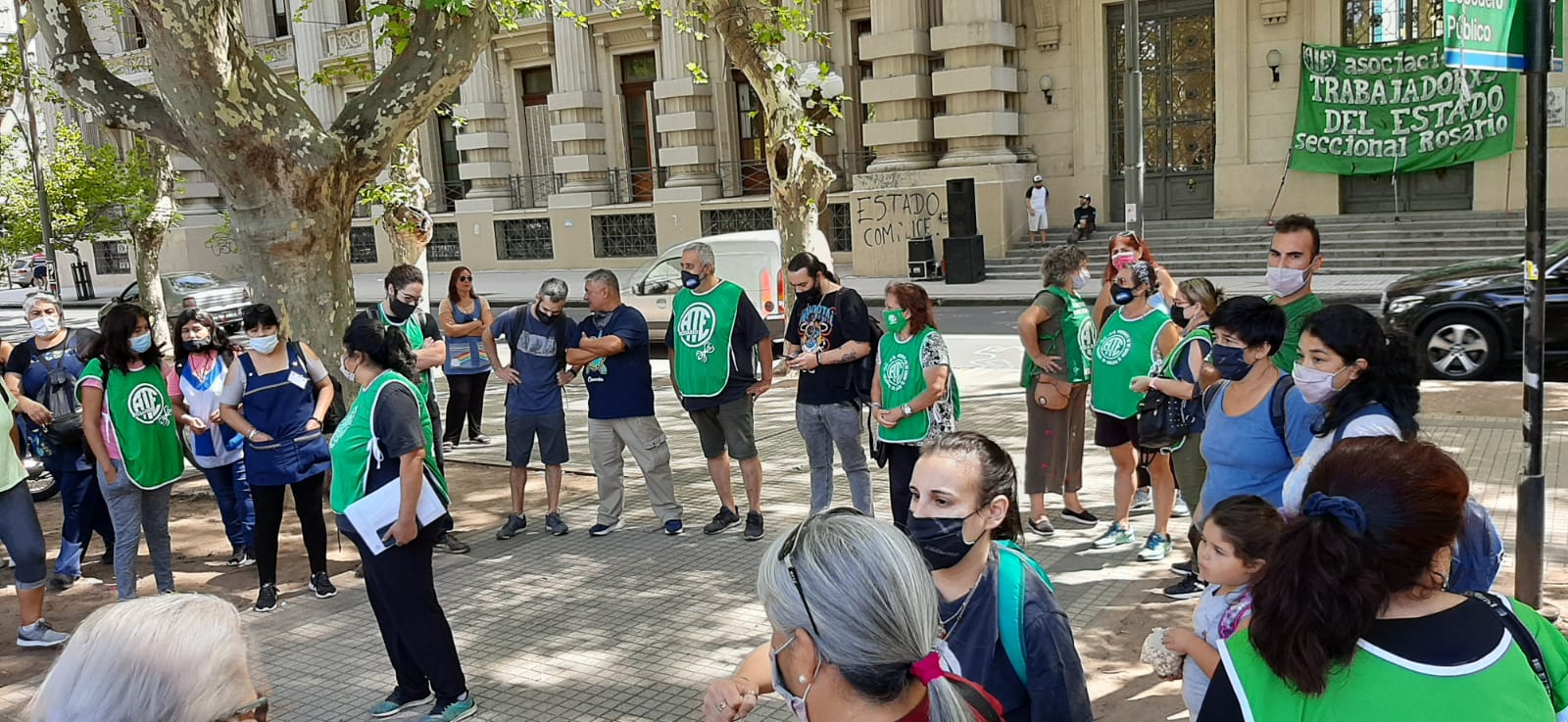 La seccional Rosario de ATE expuso que según datos que posee, “Santa Fe está en condiciones de abonar salarios dignos: la recaudación superó la inflación, el superávit a noviembre de 2021 estuvo encima de los 8 mil millones de pesos y la provincia tiene depositado en el Nuevo Banco de Santa Fe el dinero equivalente a tres meses completos de remuneraciones y contribuciones patronales de toda la planta del Estado provincial”.