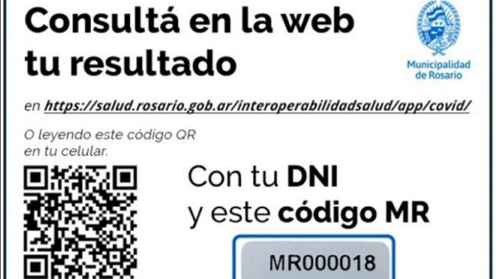 Para consultar los resultados, se debe acceder al link https://salud.rosario.gob.ar/interoperabilidadsalud/app/covid/ ingresando el número de DNI y el código MR (alfanumérico) que se otorga al momento de hacerse el hisopado. También un código QR da la posibilidad de ingresar a la página a través de teléfonos celulares.