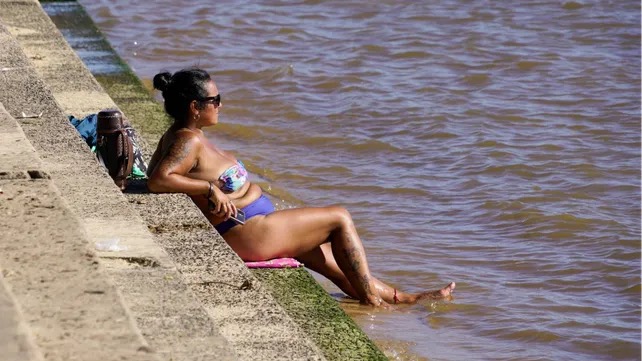 Las nubes, que son muchas y permanecerán hasta la noche, no alcanzan para mitigar el fuego de un sol ardiente. El termómetro podría alcanzar una máxima de 37 grados.