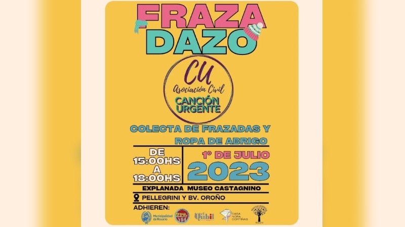 La iniciativa, denominada “Frazadazo”, contará con espectáculos musicales y baile. Se llevará a cabo en la esquina de Oroño y Pellegrini y tendrá como objetivo recibir donaciones de ropa de abrigo, frazadas y más.