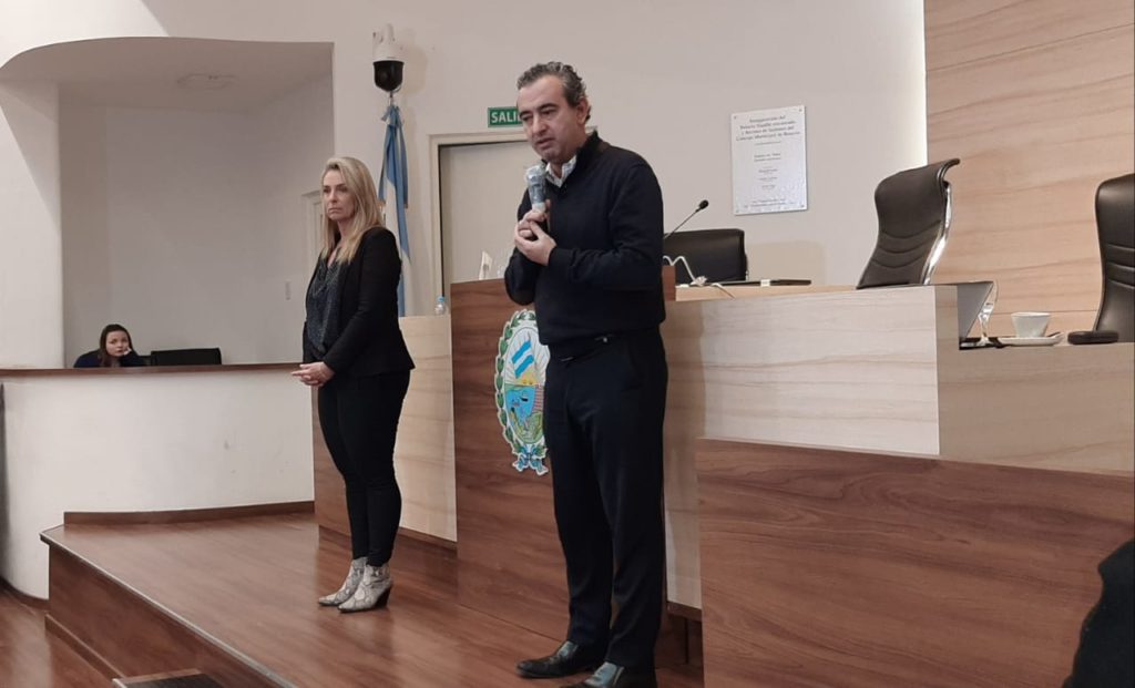 El intendente municipal concurrió, este martes, al Palacio Vasallo donde dialogó, por teleconferencia, con los integrantes del cuerpo, acompañado por la Presidenta del Concejo, María Eugenia Schmuck.