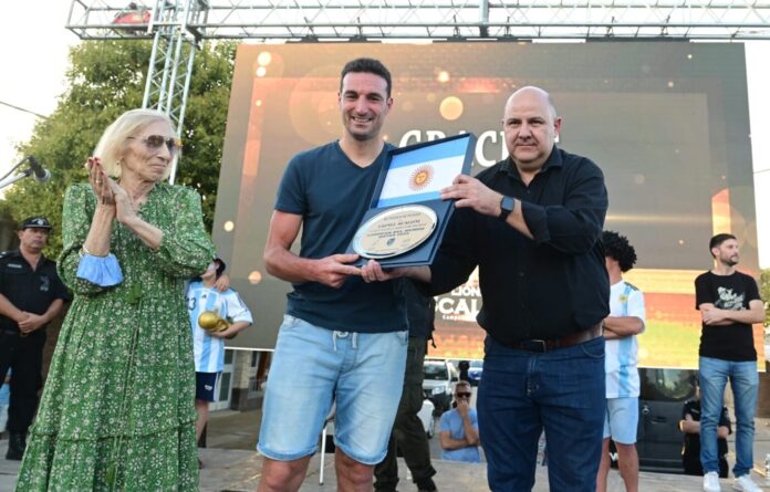 El jefe comunal le entregó una placa conmemorativa al futbolista, a la vez que destacó que “es una emoción terrible. Porque conozco a la familia de Leo y quiero darles un gracias enorme. Porque este triunfo es de todos los argentinos y de todos los pujatenses, pero especialmente de Lionel Scaloni y su familia, porque detrás de este logro hay esfuerzo, hay mucha perseverancia, hay sencillez y respeto”.