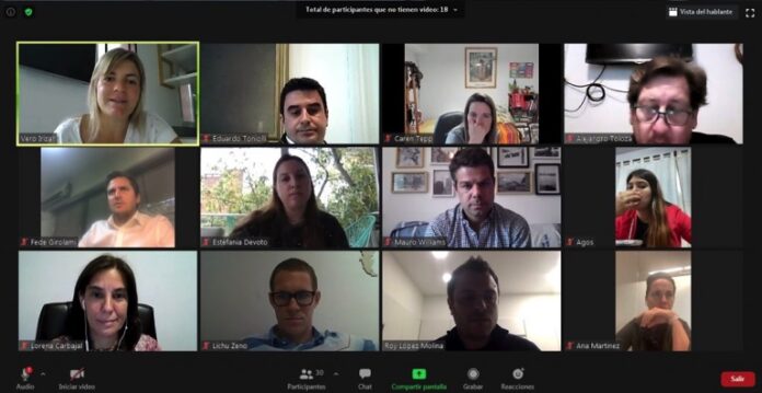 En el inicio de la reunión, se recibió con la modalidad a distancia a los representantes de la empresas Pedidos Ya, Mauro Williams y Daniela Crigna,; y a Estefanía Devoto y Paula Brusco, quienes participaron por Rappi.